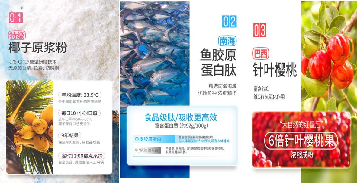 这款『幼粉罐』优势在于,,,,,动植物双蛋白=椰子植物蛋白+鱼胶原蛋白肽,,,,,选宝贵天然纯净原料:椰子原浆粉、鱼胶原蛋白肽、巴西针叶樱桃粉
